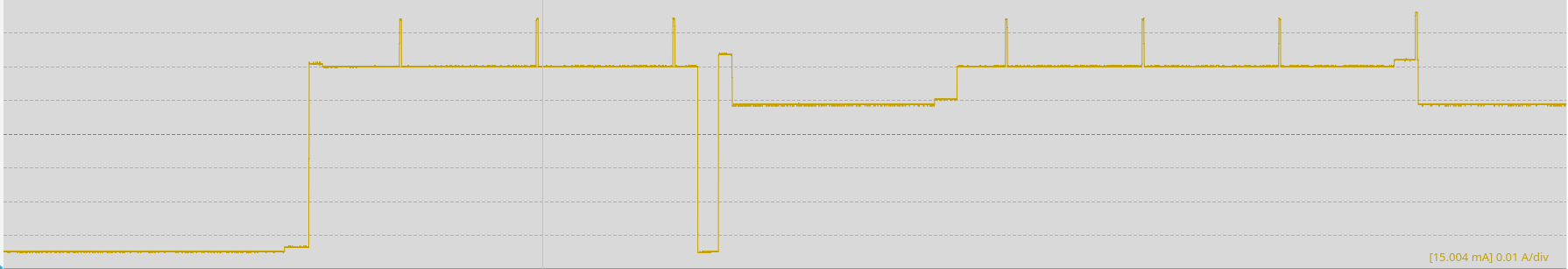 The provided 3.3 Voltage supply makes it extremely easy to analyze most microcontrollers. I just connected it to the battery terminal of the timer and opened PulseView. I selected the Nori power analyzer, now there was only one thing left to do, press start and use the device for a bit. What I saw completely explained why my batteries kept running out in a few weeks.